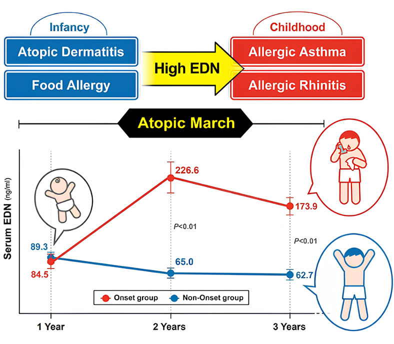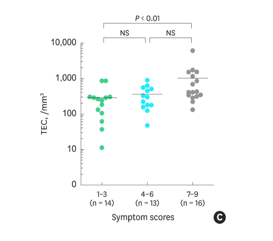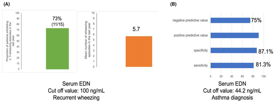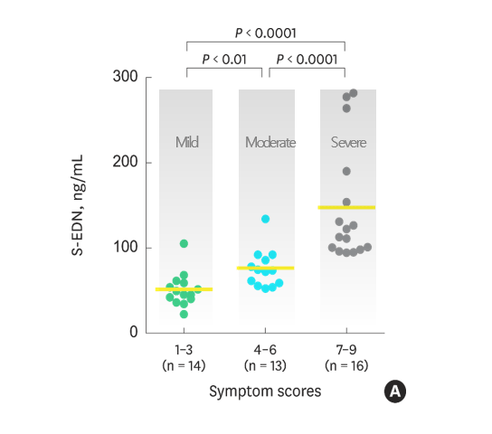 EDN demonstrates clearer differentiation of asthma severity than conventional biomarkers (ECP and TEC).